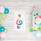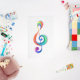 Musical key drawn from multicolored layers of rainbow colors on white background.