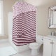 The shower curtain shows a dark red and pale pink layers design. For customization inquiries please contact info@KBMD3signs.com