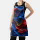 Great color and even though I ordered the kid size, it covers well enough to use during the holidays. I am not a big woman and prefer a shorter apron. I stand 5"6" and the length of the garment goes to mid-thigh. The tie straps fit well at my waist and even though there is no neck strap adjustment, the opening is plenty big enough. I am happy with the size and fit. I am sharing my apron with my 10 year old grandson, too! The color is vibrant and looks good, as shown on the website. The stitching looks strong and reinforced. Photographed is front side and back side of the apron, reinforced straps and coloring. My phone camera may not be the best at showing the details.