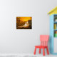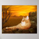 Orange tabby long haired kitty cat lazes on rock as the sun rises cat lovers 20x16 wall poster