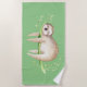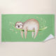 An Adorable Sloth On A Branch Just Hanging Out On A Green Background Beach Towel.