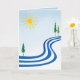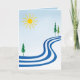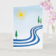 This birthday card features a simple abstract design. Float along a lazy river with the yellow bright sun shining down from a lovely blue sky and green evergreen trees along the banks. Open your mind to dreams! The text simply reads: Happy Birthday! It can be customized to suit your needs.