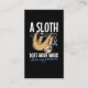 Lazy Sloth Funny Pancreas T1D Diabetes Business Card