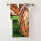 I ordered these towels because I am getting ready to stage my house for sale and wanted some really pretty towels to show off the bathroom. These are an absolutely perfect match for the teal walls and I could not be more pleased. Not only do they look beautiful, they also seem to be very good quality. They are different than any other towels I've had, as the surface fibers are not looped. I love that because I have never liked how most towels have loops that snag and pull no matter how careful you are. I pre-washed them and they came out beautifully. The towels are generously sized and they don't feel flimsy at all. I did not read the description well enough to understand I was paying as much as I was paying for just exactly what was pictured: not a set of two, but a single towel, hand towel and washcloth, so they are way more expensive than I thought (which was a lot, considering). However, I still love them enough that I went ahead and ordered a single additional bath towel so that I would have an actual set, but will need to buy a couple of solid color washcloths. Pricing is weird, because a single wash cloth is priced higher than a large bath towel?? Anyway, if you can afford them, these towels are fantastic. I would never pay this much except to show off a house for sale, but now that I've done it I will love them in my new home as well. Gorgeous! Vibrant Colors and exactly as pictured,..maybe evern better!
