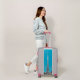 The luggage itself is awesome. So much utility for a carry-on bag. Lots of zippered pouch compartments to keep everything from getting everywhere. And it has a TSA approved lock and a dust cover! Love it. The printing is terrific. Love the way it wraps around the top and bottom. So happy the bumpers, wheels and handle color matches the design perfectly. She's gorgeous.