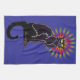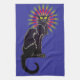 This tea towel for cat lovers and fans of vintage cat art features one of the most famous black cats in the art world. The black cat with the brilliant yellow eyes is from the iconic Tournee du Chat Noir poster by Swiss-born French Art Nouveau painter Theophile Alexandre Steinlen. Steinlen created the poster advertising a tour of Le Chat Noir cabaret artists in 1897 for his friend and owner of the nightclub, Rudolphe Salis. Paying homage to the real star of the poster, I’ve replicated the illustration of the cat minus the distraction of the wording, adding a colourful striped halo to the cat’s head so that he almost looks lit from within. You can change the blue background colour to suit with the customize button.