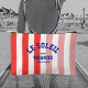 The perfect personalized accessory pouch for you vacation essentials... red and pink cabana stripes with blue "Le Soleil Vacances French Riviera" lettering. Personalize with your vacation destination. Perfect for a group vacation, a French beach theme bachelorette party or as a memento for a past trip. Matching accessories available in the Le Soleil Vacances French Riviera Cabana Stripe Collection.