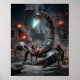 Dark and intimidating, this lead-plated scorpion artwork showcases armored body segments, riveted claws, a sharpened mechanical tail, glowing eyes, and heavy industrial textures. Crawling through a scorched desert scrapyard of pipes, steel debris, sparks, dust, and storm-lit skies, the scorpion radiates danger and resilience. Perfect for gaming rooms, garages, offices, and masculine interiors. A dramatic statement piece for fans of scorpions, industrial décor, post-apocalyptic style, and fierce mechanical creatures.