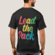 The "Lead the Pack" t-shirt design showcases bold, multi-colored gradient typography that conveys confidence and strength. The design is accented with dynamic elements like stylized paw prints, abstract trails, and geometric shapes that evoke leadership and movement. Set against a clean white background, this striking and empowering design is perfect for individuals who embrace the spirit of leading and inspiring others.