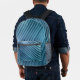 The original abstract artwork by ZoeSPEAK, in shades of marine blue on this Backpack, was created from Zoe’s original closeup photograph of a banana leaf. The diagonal bands are the ribs of the leaf.