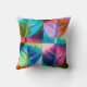 The abstract artwork by ZoeSPEAK on this square Throw Pillow began as Zoe’s original photograph of a leaf from a sea grape plant. The design explores the variety of color combinations coming from the bright light and shadow areas of the smooth, almost oval shaped leaf, and the background. There are bright reds, pinks, lavenders, aqua and dark blues, orange and dark and light greens. The veins and stem of the leaf add dimension and colors.