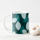 Leaf design print mug. Fashionable summer print with green leaves. Colored print mug