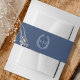 Leaf monogram art drawing dark navy blue on white invitation belly band