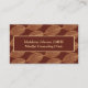 This mental health counselor, therapist, psychologist, or other professional healer business card features a beautiful repeat pattern of fall leaves in a lovely bronze on a bround background on the front. Your name is printed in a beautiful font in gold, bordered by the same gold, with your contact details printed in gold on brown on the back. There's also a QR code placeholder for you to customize with your own website. Make sure to update it, or else delete the QR code if you don't want one.