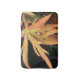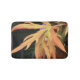 The artwork on this small Bath Mat is an original closeup photograph by HomeWare of a leaf on a young coral plant. The plants have palmate leaves whose leaflets have notched edges. After a shift in color, the leaf looks reddish gold. The flower pots have become purple, all against a dark brown and green background.