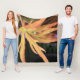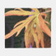 The artwork on this Fleece Blanket is an original closeup photograph by HomeWare of a leaf on a young coral plant. The plants have palmate leaves whose leaflets have notched edges. After a shift in color, the leaf looks reddish gold. The flower pots have become purple, all against a dark brown and green background.
