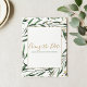 Announce the new plans with a refined change the date card framed in fresh greenery, accented with subtle gold effect splatters, and headlined in elegant script for instant clarity. The reverse provides space for the updated date, venue, and a short note to guests, keeping the message warm and organized. Designed to complement outdoor, garden, rustic, and classic themes, the timeless green palette ensures the card integrates seamlessly with an existing stationery suite. Please not the gold color is printed.