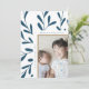 Leafy Frame Blue and White Photo Christmas Holiday Card