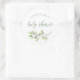 This trendy and stylish baby shower sticker features a leafy green watercolor frame and modern typography, on a white background.