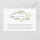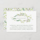 This trendy and stylish baby shower book request card features a leafy green watercolor frame and modern typography, on a white background.