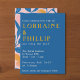 Leafy Lithograph Bold Blue yellow and pink wedding Invitation