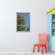 Poster that looks like a window -- Spring Tree Enjoy the first fresh green leaves of Springtime as you look out from your window poster onto this tree against a blue April sky. It is framed by a wood window and will give you the effect of a room with a view no matter where you live. This is such a relaxing scene to have on your wall.
