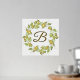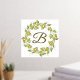 Chic foil print, with a gold foil and green leafy wreath, with a single letter gold foil monogram, in the middle. Personalize the letter for a lovely little gift idea.