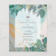 LeahG Seaglass Ink Teal Gold Greenery Wedding Inv Flyer