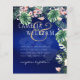 Modern trendy Royal Blue tropical island leaves and flowers design theme. Coordinating items with this design can be found in the attached collection which includes wedding invitations, rsvp, save the dates, welcome sign, stickers, programs, menu, bridal shower invitations, rehearsal dinner, nuestra boda invites, budget invitations and more. This design theme is perfect for your destination, beach, tropical island, summer wedding. Design by registered brand LeahG.