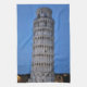This captivating photograph showcases the iconic Leaning Tower of Pisa standing elegantly against a deep blue twilight sky in Pisa. The historic marble tower, famous for its unmistakable tilt, is beautifully illuminated, highlighting its intricate Romanesque arches and layered columns.
