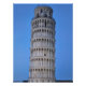 This captivating photograph showcases the iconic Leaning Tower of Pisa standing elegantly against a deep blue twilight sky in Pisa. The historic marble tower, famous for its unmistakable tilt, is beautifully illuminated, highlighting its intricate Romanesque arches and layered columns.