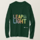 A subtle yet impactful t-shirt design. "Leap into Light" is written in a flowing script, with each letter adorned with a different colorful motif. The design offers a touch of elegance and personality.