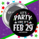A fun & unique leap year birthday design for a leap day baby birthday boy or girl lucky enough to have a Feb 29th leap day birthday! Celebrate your unbirthday this non-leap year & party like it's leap day! Features "Party Like It's Feb 29th" funny leap day birthday meme & leap year birthday hashtag w/ smiling frog wearing a crown in a colorful birthday party theme graphic. Fun for leaplings of all ages!