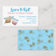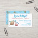 Business card for a knitting teacher. “Learn to Knit” is the sample text in blue on white cards. A pair of knitting needles with knitting swatch and ball of yarn is the image on the front with three templates for adding personal name, business name, location, contact, or whatever you need. Text is light blue and one line of pink. A fun yarn balls and cats pattern covers the back of the cards. This business card design can also be used by a knitwear designer, fiber artist, craft shop, or yarn seller. The design will fit well on other sizes that have a similar shape.