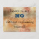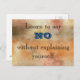 Inspirational wisdom and advice - text say Learn to say No without explaining yourself. The background is a rustic grunge abstract texture design using fall colors such as red, orange and yellow. The colors are subtle muted tones and the background has a rough faded look.
