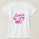 Learn to say no inspirational quote. Hand-written pink inspirational quote on t-shirts.