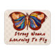 Celebrate the growth of your emerging power with this multi-colored butterfly with the body of a woman in the center and the words "Strong woman learning to fly."