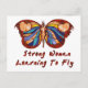 Celebrate the growth of your emerging power with this multi-colored butterfly with the body of a woman in the center and the words "Strong woman learning to fly."