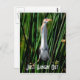 This postcard depicts a Least Bittern, a secretive shy bird of swamplands, straddling some reeds. The words say "Just Hanging Out"