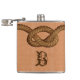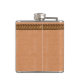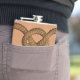 Western theme drinking flask done in graphics of a tan leather look, with a knotted rope, around the top. Personalize the brown one letter monogram for yourself or as a great gift idea.