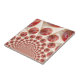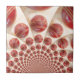 The artwork showcases a central cluster of red cricket balls that radiates outwards in a concentric, spiraling fashion. The balls vary in size, suggesting depth and perspective. The background is a soft, textured off-white, providing a subtle contrast that highlights the rich red of the cricket balls. The overall effect is visually engaging and creates a sense of organized yet dynamic movement.