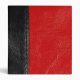Red and black colored stitched leather close up with seam