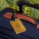 Classy leather design acrylic luggage tag. Customize it with your personal contact information.