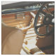 A picture of interior of a car with seats covered in cream leather and fibre dashboard