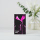 Business card template with a retro screen-print style design featuring an eighties leather motorcycle jacket in black, pink and white. A customizable design for you to personalise with your own text, pictures and ideas. Image created from a photograph using digital techniques.