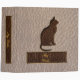 A beautiful pressed cat sitting with the tail around the legs with a golden edges. Perfect for all animal lovers and or any occasion or business. Comes in many different products. Comes in brown, dark brow, soft brown.