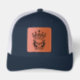 Custom Leather Patch Hat, Sytle: Adult Retro Trucker Cap, Color: Heather / Black, Shape: Circle