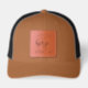 Custom Leather Patch Hat, Sytle: Adult Retro Trucker Cap, Color: Heather / Black, Shape: Circle
