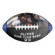Black Leather Print Blue Player Name Number Team Photo Football. The text is trendy white typography on a black leather printed background with blue stripes. Personalize it with your photo, player`s name, number, team name and year. You can change any text on the football or erase it. A perfect gift for a football player, teammate or coach. Great keepsake to remember your favorite sport.
