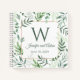 This pretty green leaf design spiral wedding notebook features your last name initial with first names and wedding date. Choose inside pages lined, graph paper, etc.